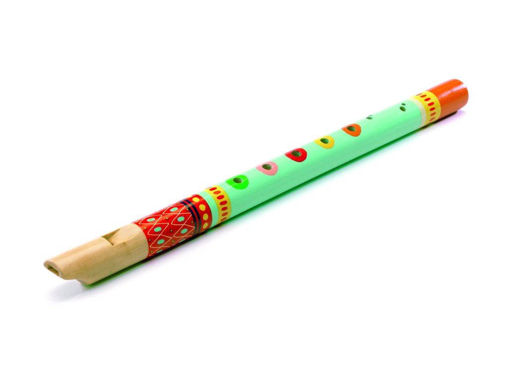 Farebná drevená flauta so 6 otvormi. Každý z otvorov je vyznačený inou farbou, aby dieťa ľahšie našlo správny tón. Na trubici nechýbajú otvory na obmenu tónu. Flauta je vhodný dychový nástroj pre začiatočníkov.