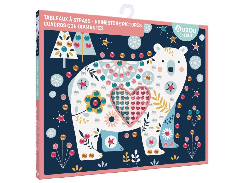 Deti si môžu vytvoriť 2 nádherné obrázky ľadového medveďa a jelenčeka, ktoré ozdobia až 250 trblietavými štrasovými kamienkami v 5 žiarivých farbách. Stačí ich nalepiť na vyznačené miesta a obrázky sa premenia na ligotavé umelecké diela.