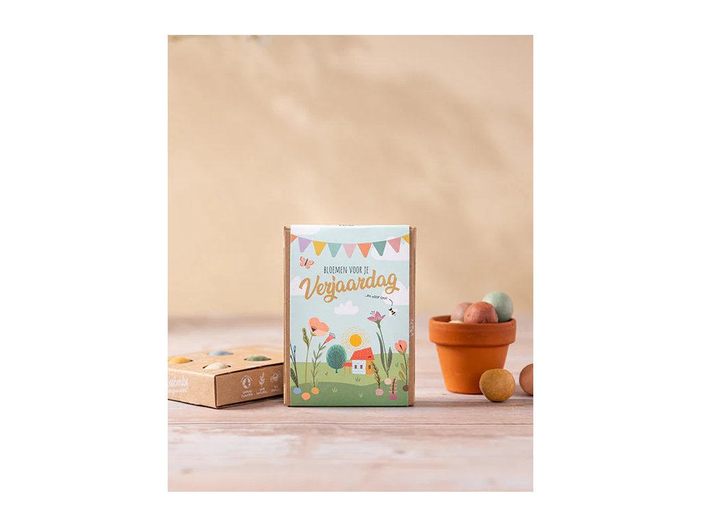 Zmes organických semien divokých kvetov, prírodného ílu, živín, prírodných farbív. Farebné prevedenie semienkových bômb je náhodné.