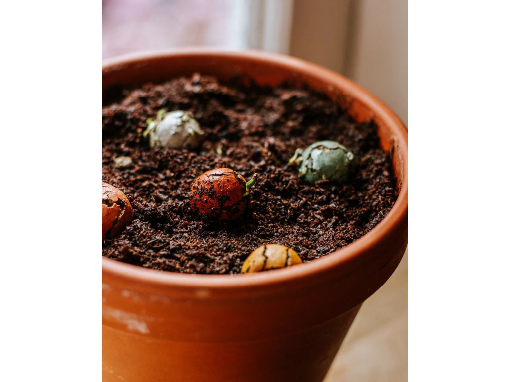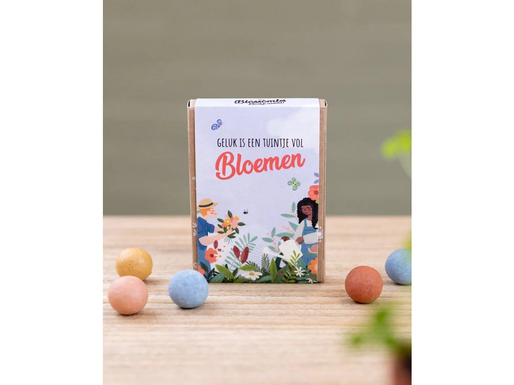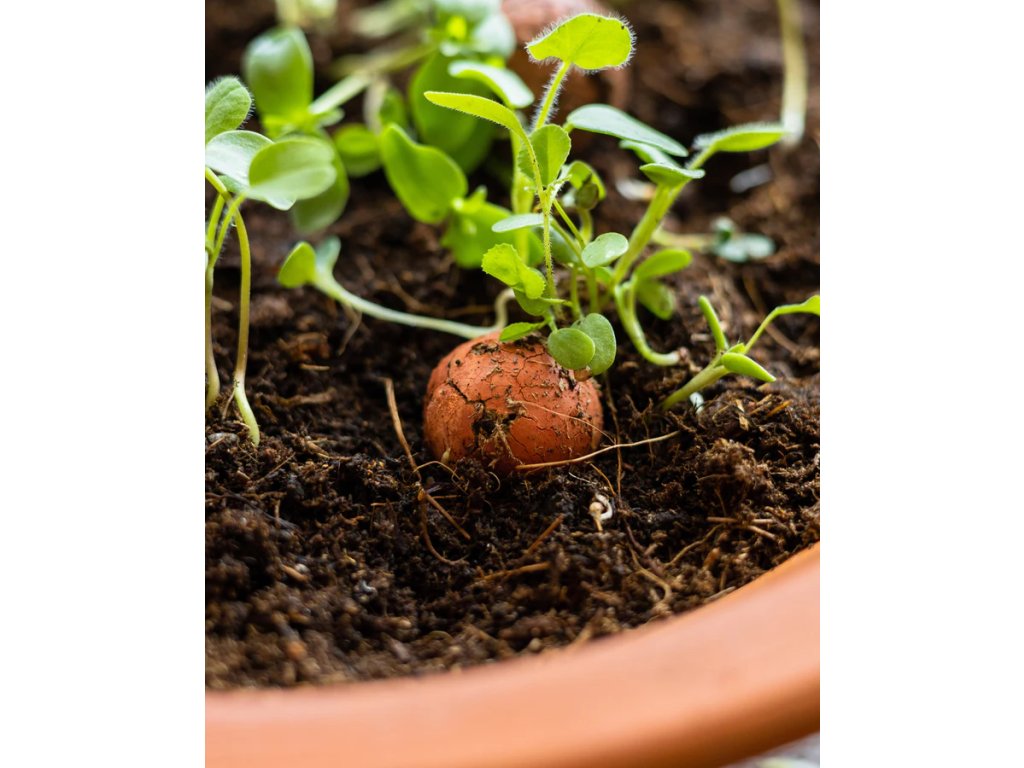 Zmes organických semien divokých kvetov, prírodného ílu, živín, prírodných farbív. Farebné prevedenie semienkových bômb je náhodné.