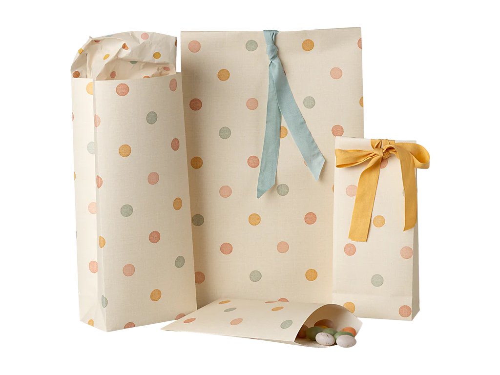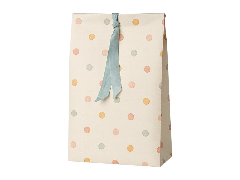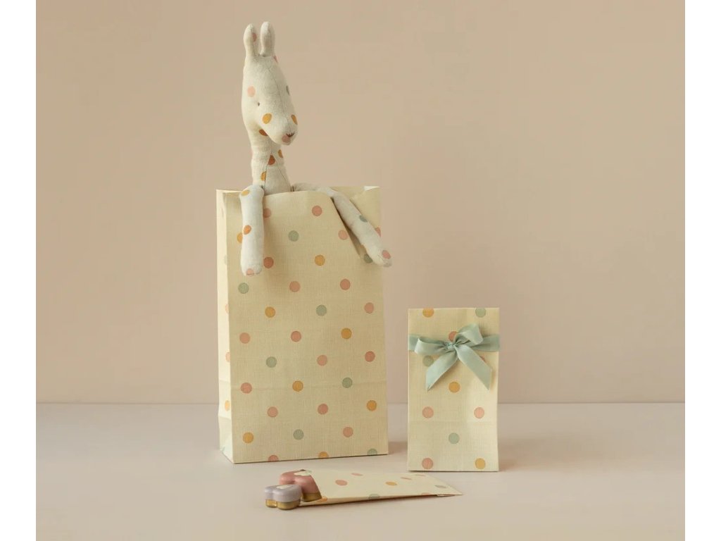 Čarovný svet kde môžu byť zápalkové krabičky postieľkami pre myšky, princezné sú dokonalými spoločníčkami na čaj a dobrodružstvá nájdete na priateľskej prechádzke lesom. Je to svet, v ktorom sú všetci kamaráti. Je to aj nadčasový svet plný krásnych doplnkov do interiéru izbičiek či obývačiek, ktoré sa budú zbierať, uchovávať a zdieľať s priateľmi a rodinou po celé generácie. Myšky majú svoj domček, v ňom s detskými kamarátmi prežívajú príbehy, zariaďujú detailne vypracovaným zariadením každý jeden kútik. Varia, pečú, pripravujú sa na výlety do prírody, na pláž, na posedenie pri vianočnom stromčeku. Najväčšia radosť sa dostaví už len s krásne zabaleným darčekom. Keď použijete krásny baliaci papier a vrecká od značky Maileg, prvý dojem urobíte rozhodne dokonalý! Papier o dĺžke 10 m je pokrytý jemnými ilustráciami. Zamilujú sa doňho ako deti, tak určite aj mnohí dospelí, a to nielen kvôli vzhľadu, ale tiež kvôli kvalitnému papieru s FSC certifikáciou. Ak darček zabalíte do darčekového vrecúška vytvoríte určite tú najkúzelnejšiu kombináciu!