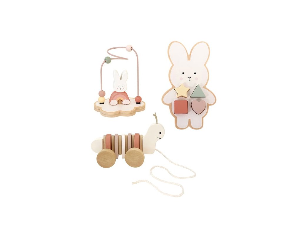 Darčeková sada drevených hračiek so zajačikom – ideálny darček pre bábätko