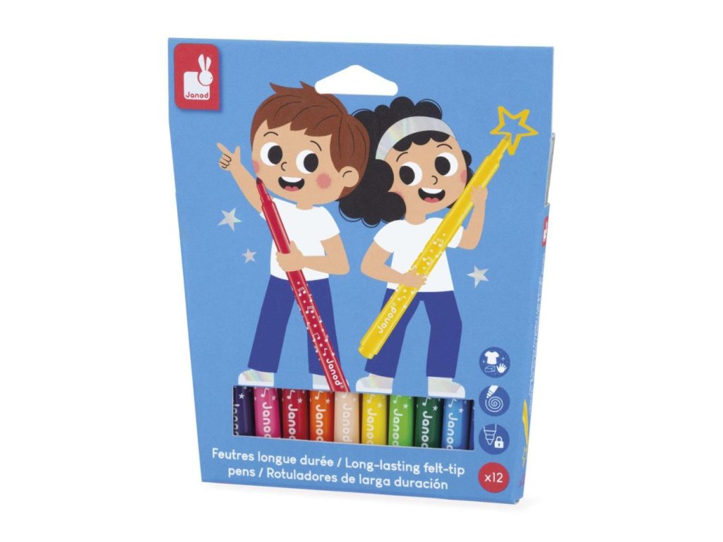 Táto sada fixiek s plstenými hrotmi je špeciálne navrhnutá tak, aby vydržala a priniesla farby do kreslenia aj pre tých najmenších na dlhú dobu! Kónická špička plstí ich robí mimoriadne všestrannými: od jemných línií až po širšie sfarbenie.