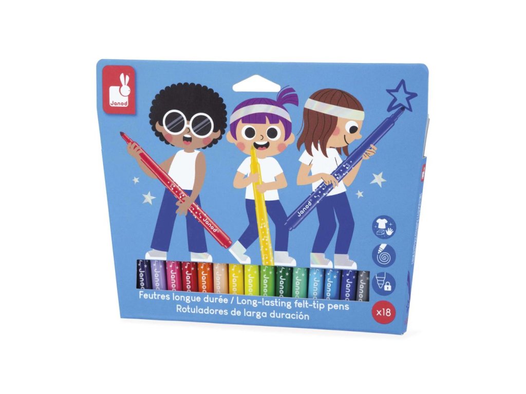 Základy farbenia! S týmto balením 18 trvanlivých fixiek môžu deti od 3 rokov oživiť svoje kresby.