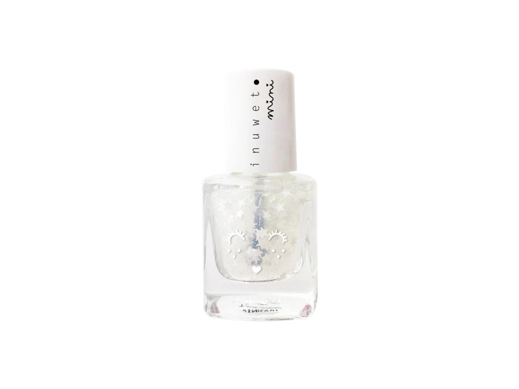 Extra voňavý priesvitný detský lak na nechty s trblietkami a hviezdičkami. Lak je umývateľný vodou a ako bonus je organický a ekologický.