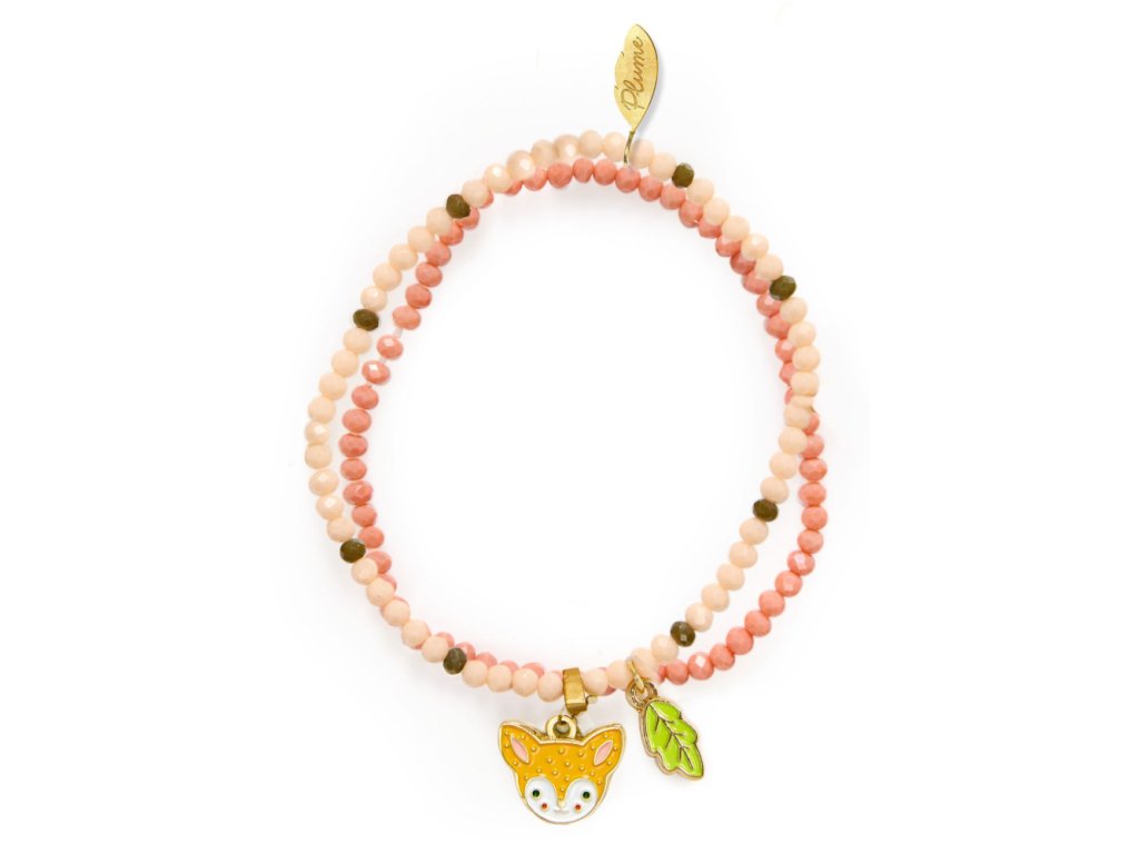 Náramok Automne je inšpirovaný lesnou prírodou. Skladá sa z dvoch zladených náramkov s akrylovými ružovými korálikmi, ktoré doplňujú dva smaltované kovové prívesky líška a list. Vďaka dvojitej elastickej niti sa náramky ľahko nasadzujú a pohodlne nosia.