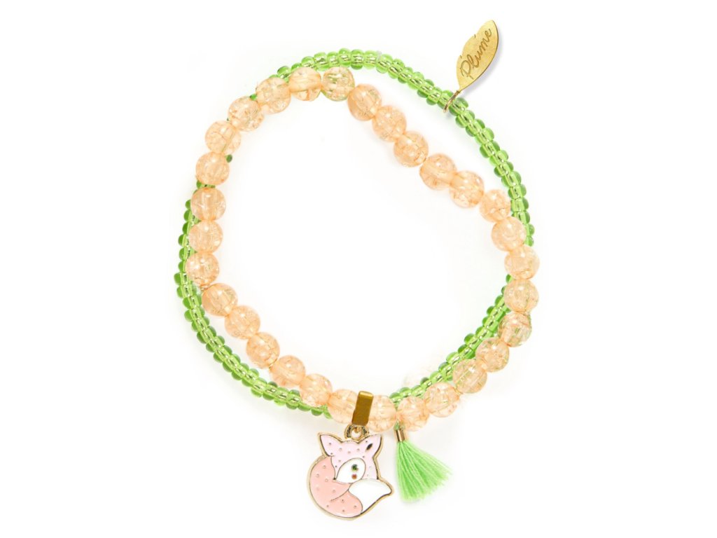 Náramky Myrtille sú inšpirované lesnou prírodou. V súprave sú dva zladené náramky s akrylovými korálikmi v prírodných tónoch. Jeden náramok zdobí smaltovaný kovový prívesok s líškou a druhý zdobí bavlnený strapec. Vďaka dvojitej elastickej niti sa ľahko nasadzujú a pohodlne nosia.