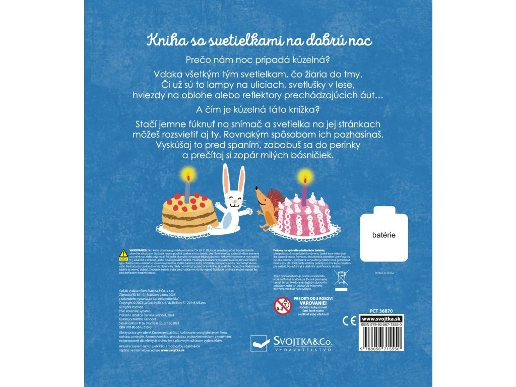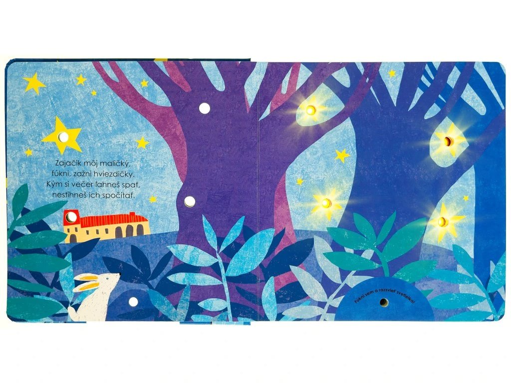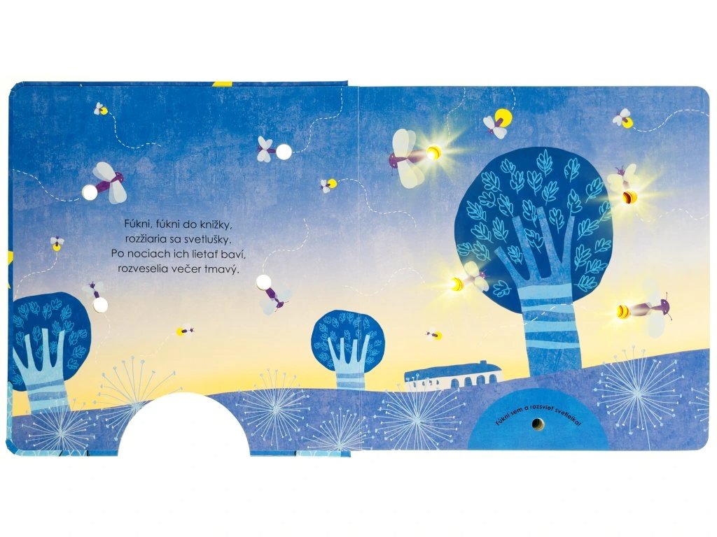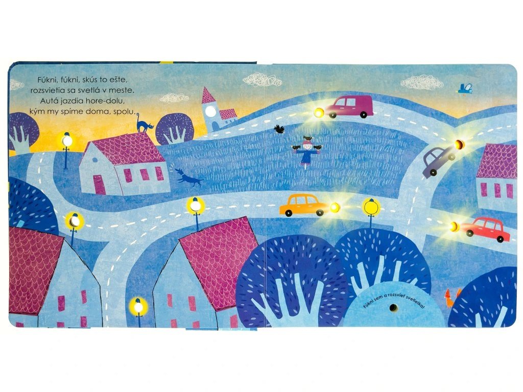 Fúkajte s deťmi na snímač v kúzelne ilustrovanom leporele so svetielkami - rozsvecujte a zhasínajte ich pred spaním a nechajte sa ukolísať milými básničkami.