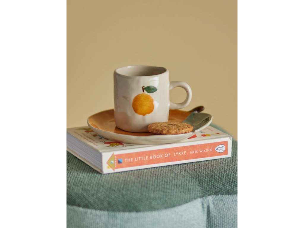 Pohárik Agnes od Bloomingville MINI je vyrobený z kameniny a zdobený sladkým oranžovým pomarančom na bledom podklade. Šálka má rukoväť, ktorá perfektne padne aj do malých ručičiek. Použite šálku na príjemné chvíle s horúcim kakaom, marshmallow a teplými objatiami alebo aj ako šálku na kávu pre dospelých. Keď si vychutnáte svoj nápoj až do dna, vo vnútri na vás čaká ukryté malé tajomstvo - ručne maľovaný pomaranč. Vďaka ručne maľovanej technike sa každý hrnček mierne líši vzorom a rozložením farieb, čo zaručuje, že každý hrnček bude jedinečný.
