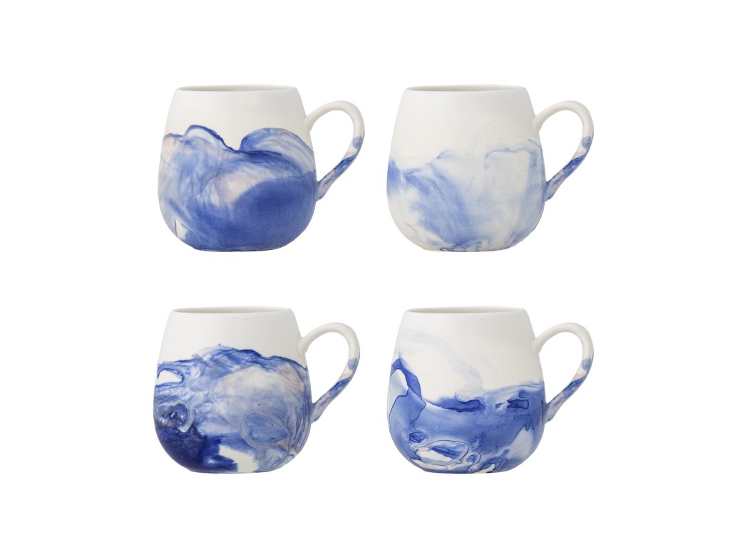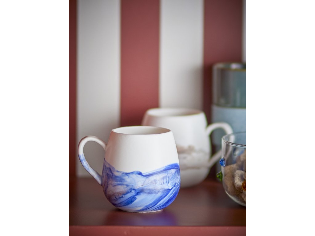 Hrnček je vyrobený z kameniny s fúkanou glazúrou, ktorá vytvára akvarelový efekt v odtieňoch modrej. Vďaka tejto špeciálnej technike nanášania glazúry je každý hrnček skutočným originálom. Nikdy nie sú dva rovnaké.