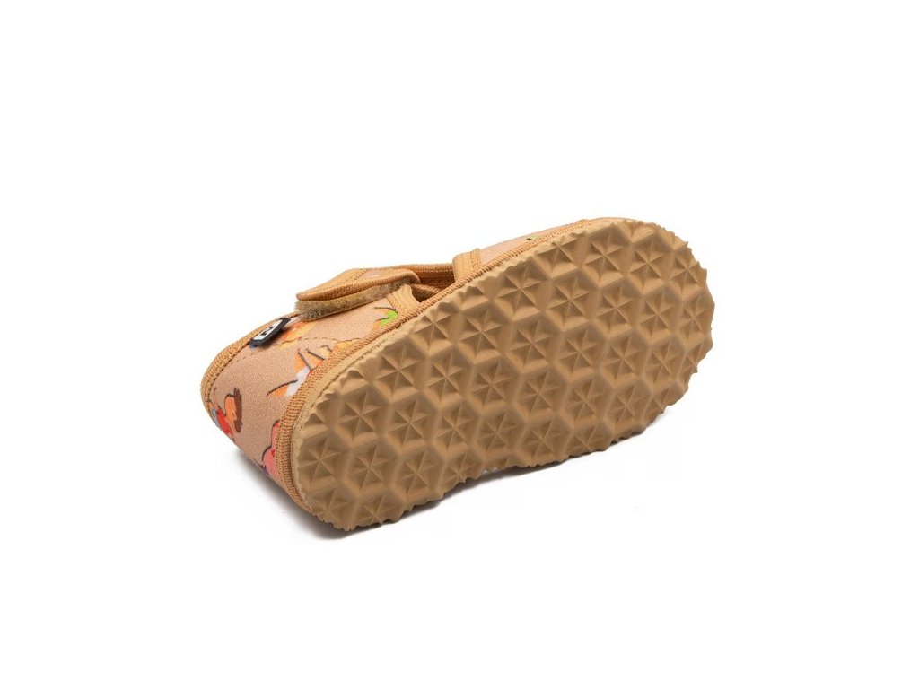 Podošva je pružná, ohybná, z materiálu na báze prírodného kaučuku s výrazným protišmykovým efektom aj na hladkých a lesklých povrchoch . Tenký klin z pružného materiálu v časti podošvy pod pätou tlmí nárazy na citlivú pätovú kosť pri skákaní a behaní na tvrdých povrchoch, na ktorých sa deti prevažne pohybujú. Päta nohy mierne zvýšená voči podložke podporuje funkčnú zdatnosť nôh. Chôdza v takejto obuvi je pružnejšia a menej únavná.