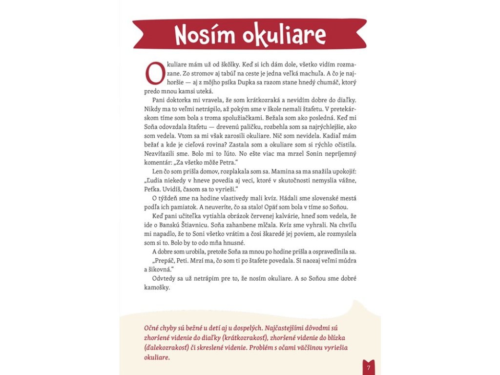 Toto je moja trieda: Miro, ktorý má problém s čítaním, Anička so svojím adrenalínovým perom, Adam so zubným strojčekom, hanblivá Simonka, Mirka, ktorá si viac rozumie s chalanmi než s dievčatami... Sme úplne obyčajné decká, hoci každý z nás je v niečom iný. A tak je to predsa v poriadku. Hlavné je, že je nám spolu fajn, pretože si navzájom pomáhame. Táto kniha môže pomôcť aj rodičom a učiteľom pri komunikácii s deťmi. Pozitívne ju hodnotia aj odborníci z oblasti školskej psychológie.