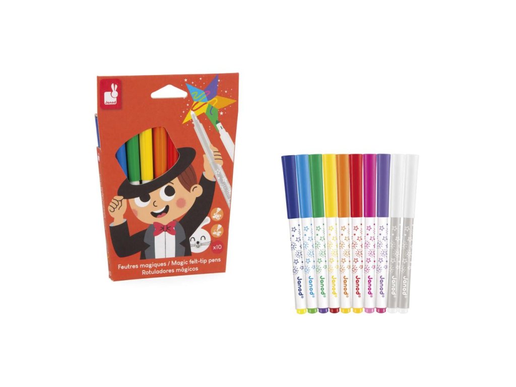 Týchto 10 magických fixiek, vhodných pre deti vo veku 3 a viac rokov, ponúka paletu žiarivých farieb so špeciálnou funkciou, ktorá ohromí tých najmenších, pre úžasné kresby.