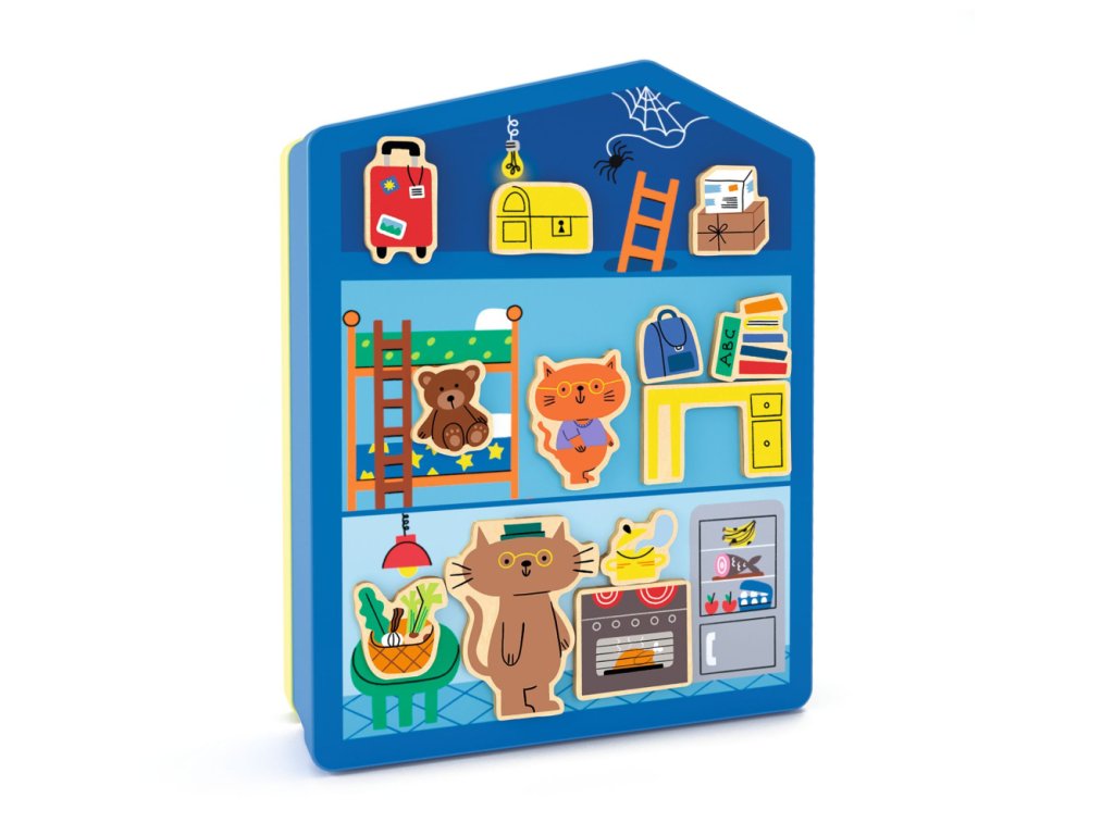 S Inzeboxom sa môžete hrať s drevenými magnetkami na tvarovanej plechovej dóze. Užite si zábavu pri zdobení 6 izieb, aby ste ich oživili (podkrovie, spálňa, kuchyňa, obývačka, kúpeľňa a herňa)!