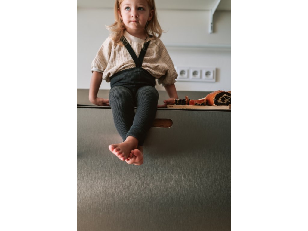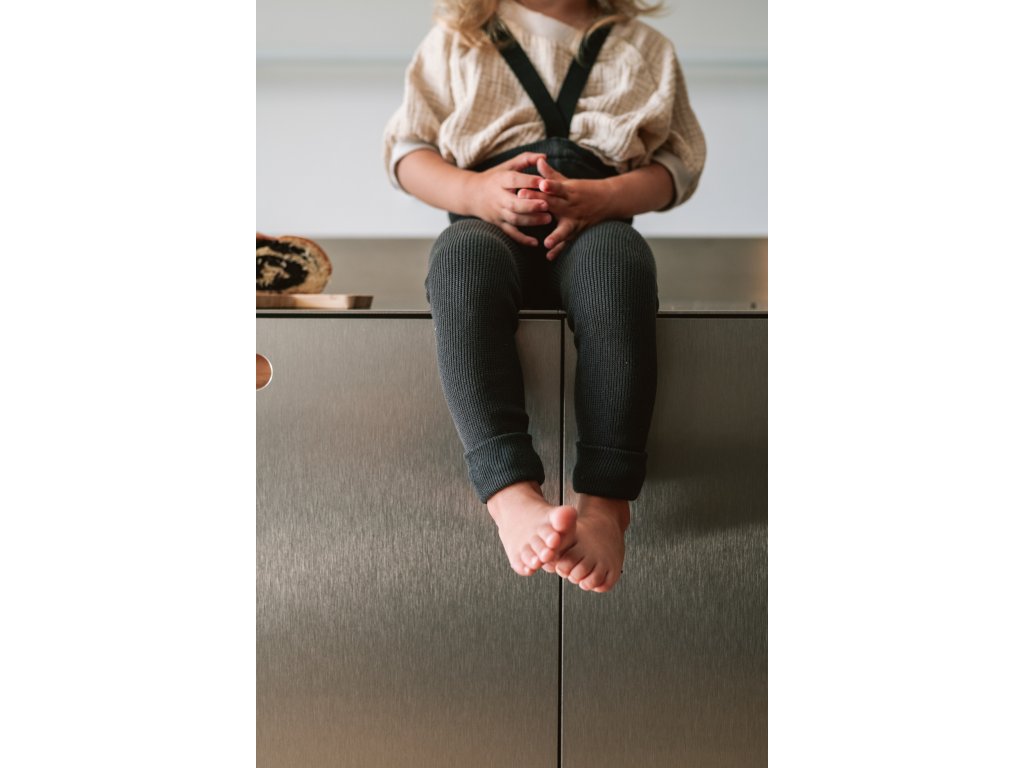 Rastúci strih vďaka pružnému patentu, ktorý sa dá vylomiť podľa potreby. Vyrobené z najjemnejšej česanej bavlny (85%) pôvodom z EÚ a farbené certifikovanými švajčiarskymi farbami. doplnené jemným polyamidom (15%) vďaka, ktorému držia tvar a sú odolnejšie. Je vpletený medzi bavlnky tak, aby sa nedotýkal detskej pokožky, preto sú vhodné aj pre ekzematickú pokožku. V páse na gumičku, ktorú môžete regulovať.