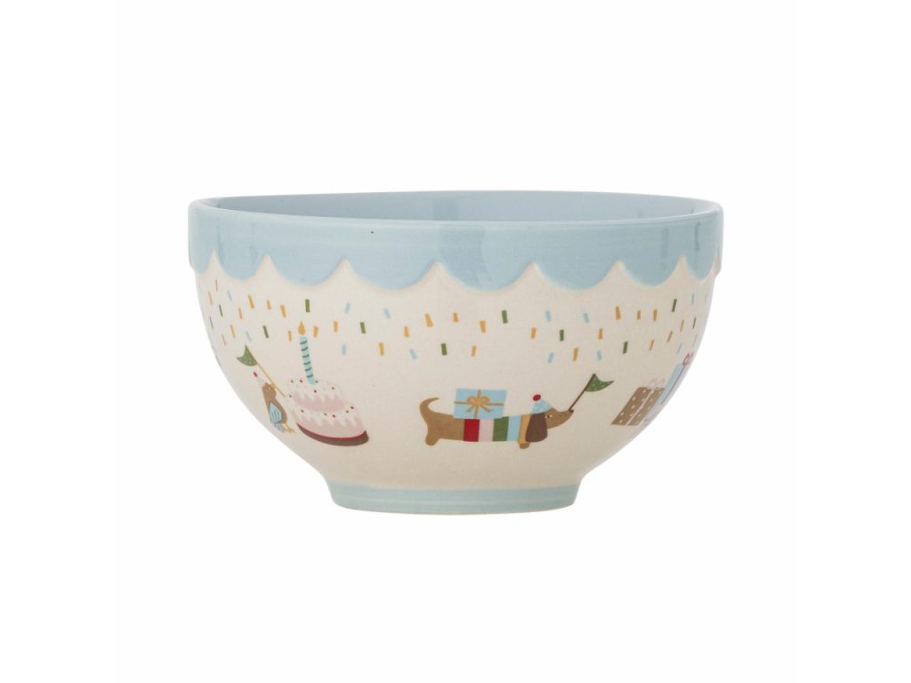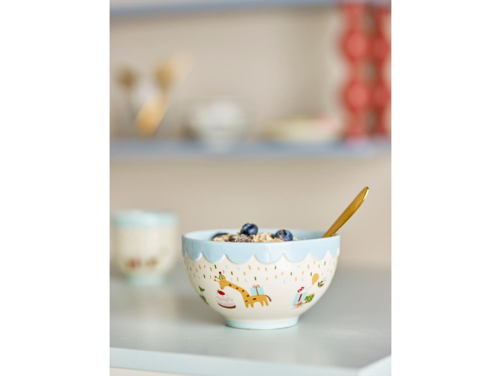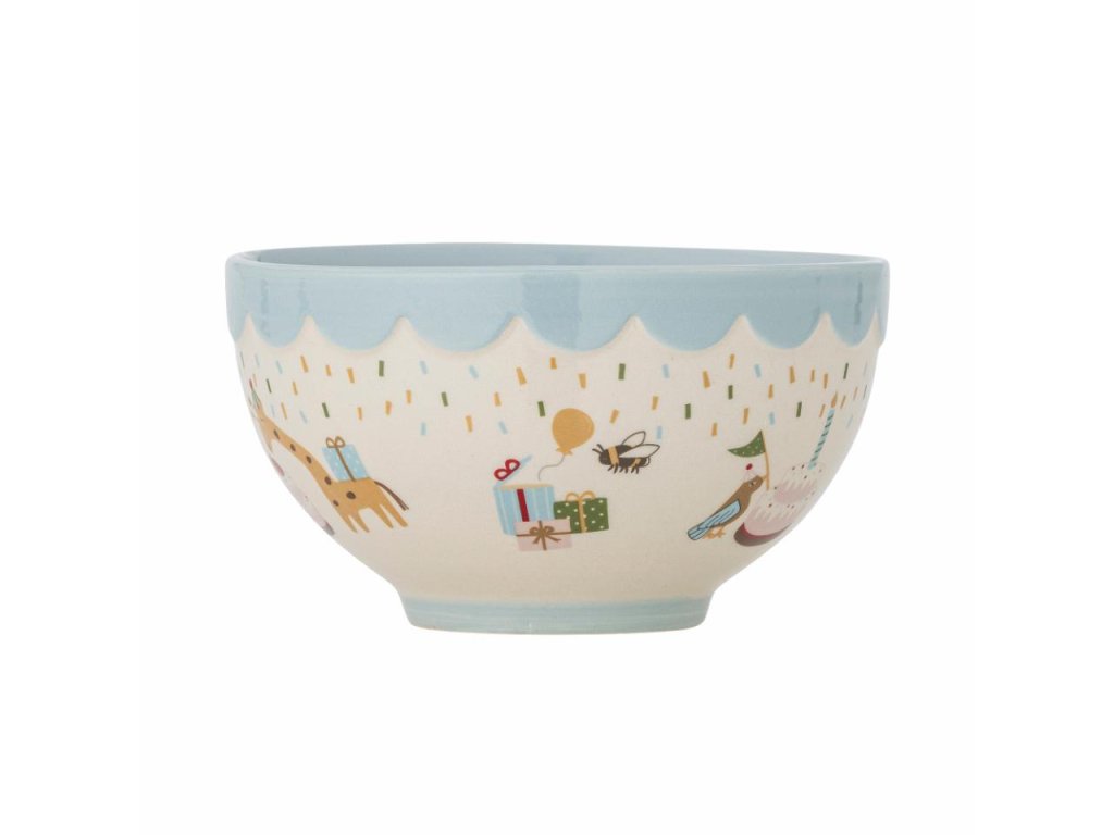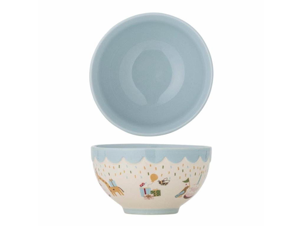 Miska Celebrate od Bloomingville MINI je vyrobená z kameniny a zdobia ju veselé ilustrácie zvieratiek s jemným tónom, v motíve narodenín. Modrá farba dodáva stolu teplo a domácu pohodu. Ideálna miska na rýchle raňajky polievku alebo poslúži aj ako miska na ovocie. Vďaka ručne maľovanej technike sa každá miska mierne líši vzorom a rozložením farieb, čo zaručuje, že každá miska bude jedinečná.