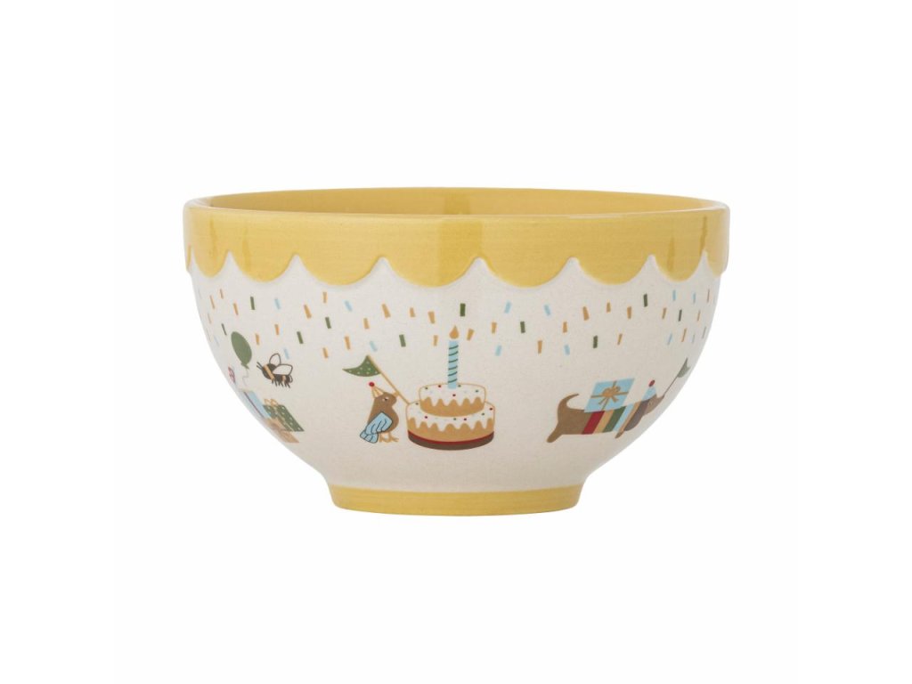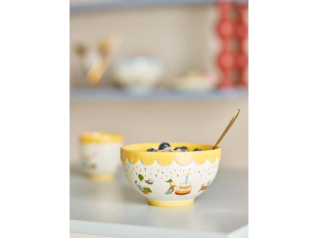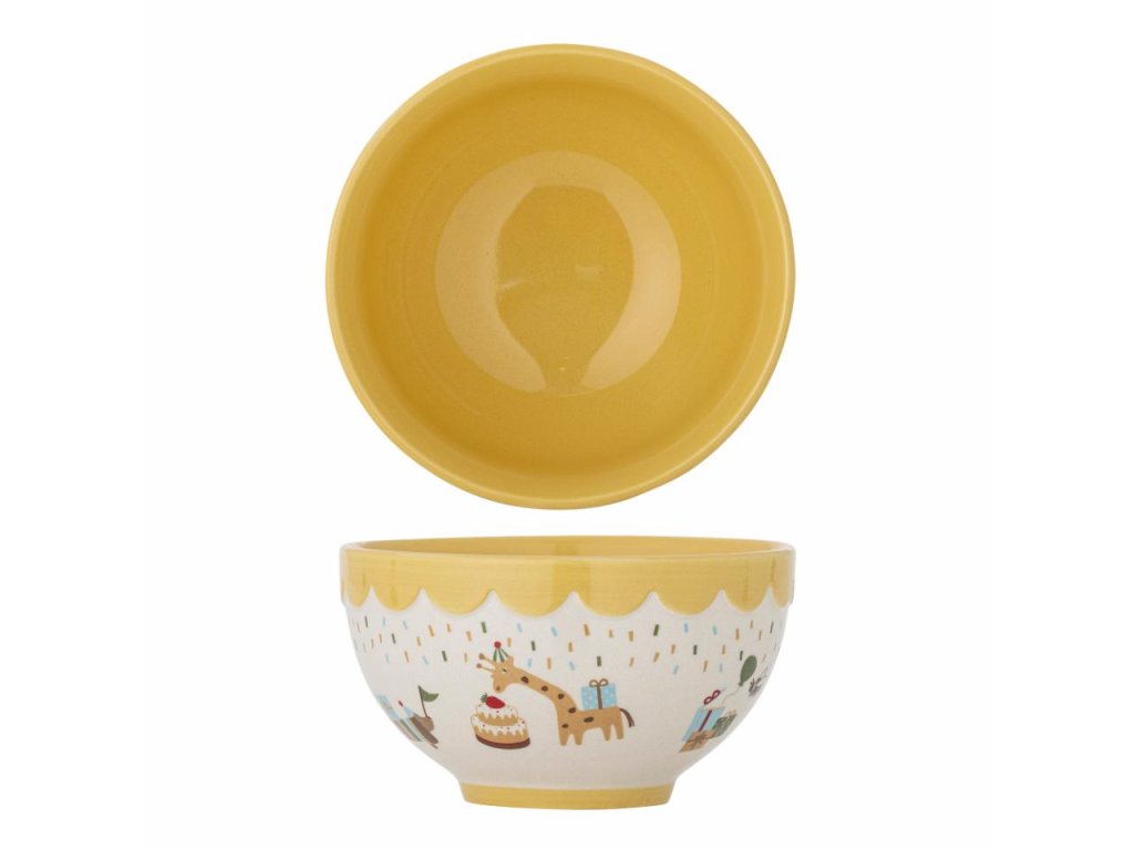 Miska Celebrate od Bloomingville MINI je vyrobená z kameniny a zdobia ju veselé ilustrácie zvieratiek s jemným tónom, v motíve narodenín. Žltá farba dodáva stolu teplo a domácu pohodu. Ideálna miska na rýchle raňajky polievku alebo poslúži aj ako miska na ovocie. Vďaka ručne maľovanej technike sa každá miska mierne líši vzorom a rozložením farieb, čo zaručuje, že každá miska bude jedinečná.
