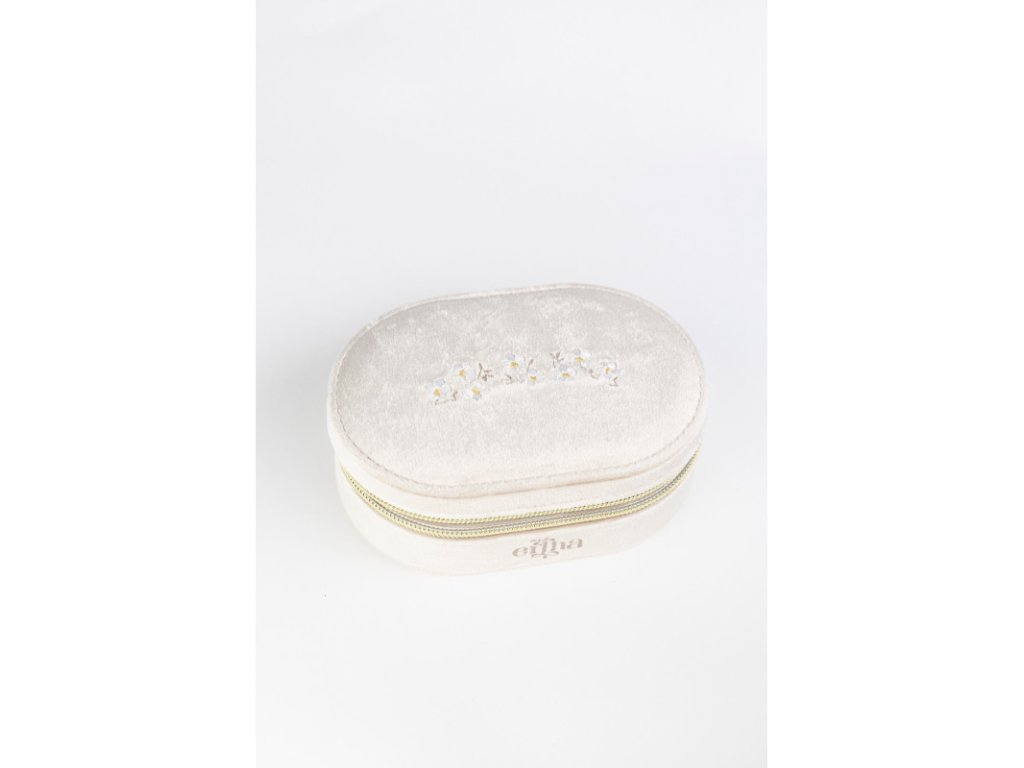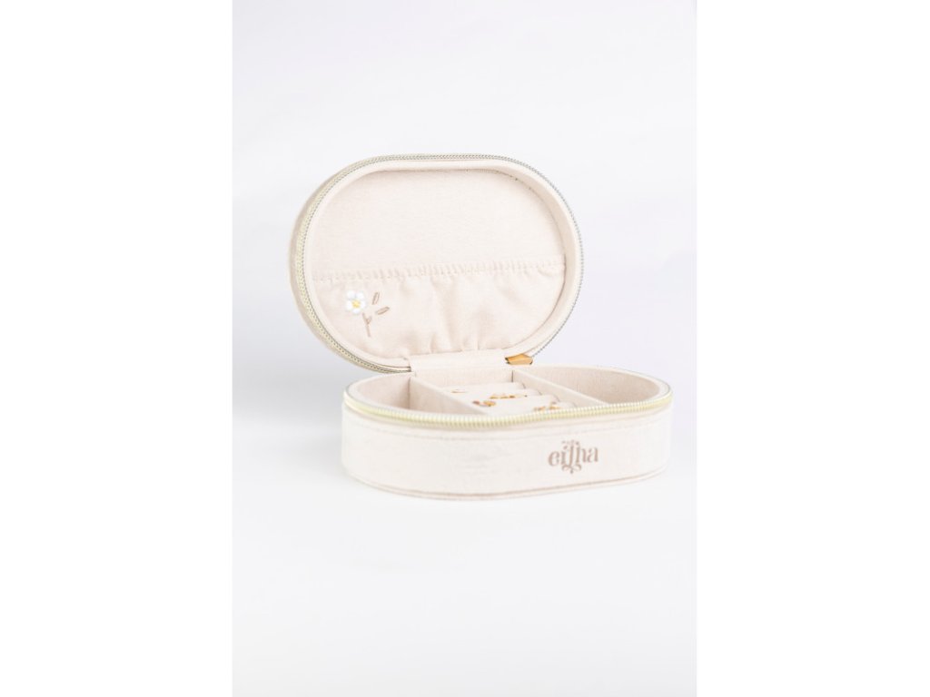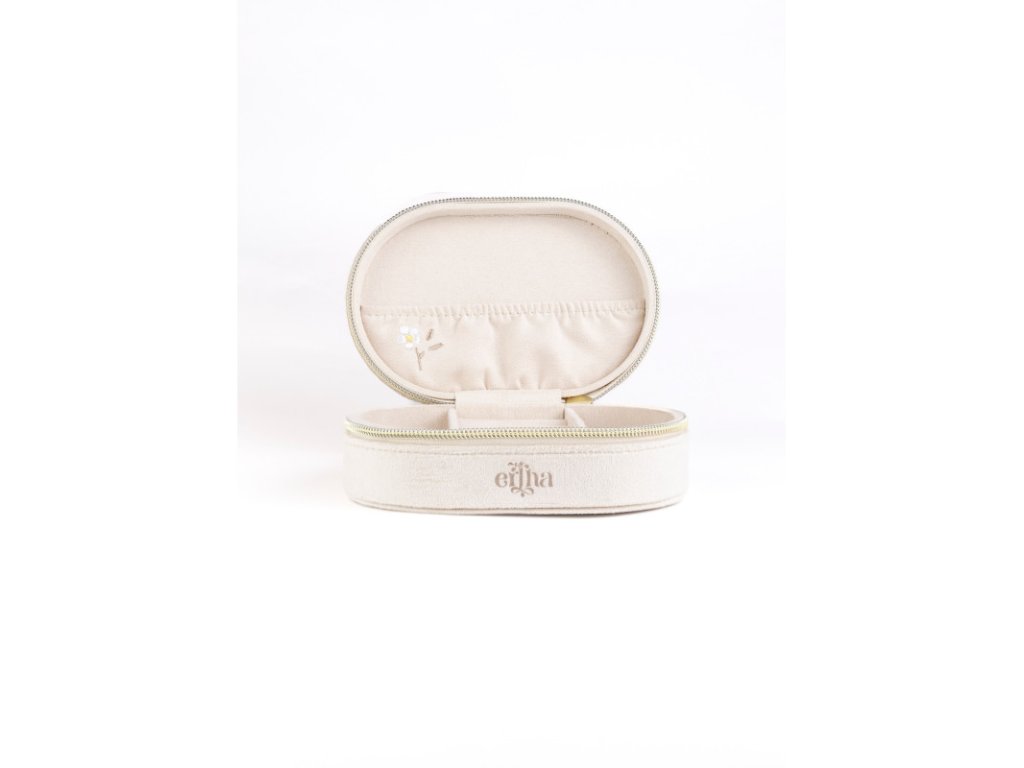 Luxusná zamatová šperkovnica pre malé parádnice. Jemná výšivka kvietku, mäkký povrch a rafinovaný dizajn spájajú štýl, funkčnosť aj nežnosť v jednom kúsku.