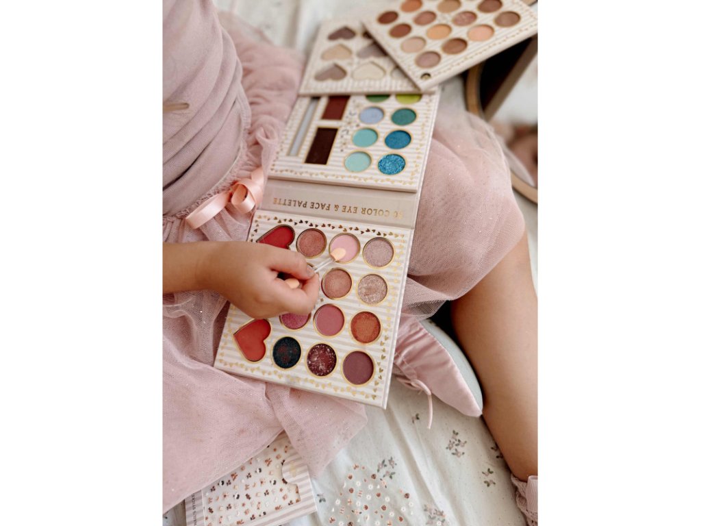 Každá malá slečna túži po svojom prvom make upe. S touto nádhernou paletou jemného a bezpečného make-upu s až 50 jemnými nude a zemito ladenými odtieňmi na oči a tvár môže každé dievčatko hravo skúšať prvé líčenie a učiť sa kombinovať farby prirodzene a nežne.