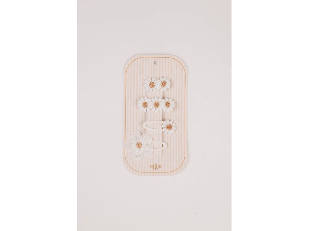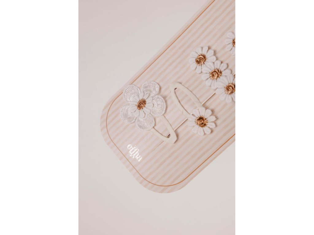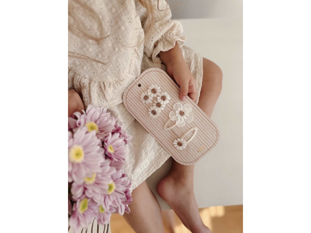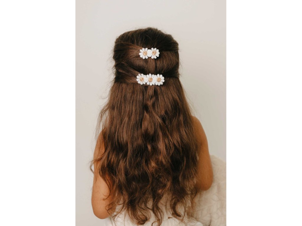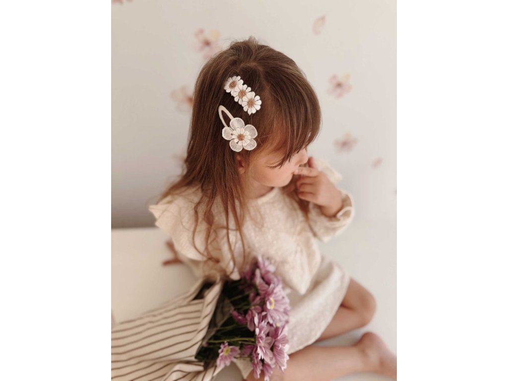- Set 4 jemných sponiek inšpirovaných margarétkami 1 x spona dvojkvietok, 1 x spona trojkvietok, 1 x sponka veľký kvet, 1 x sponka malý kvet.