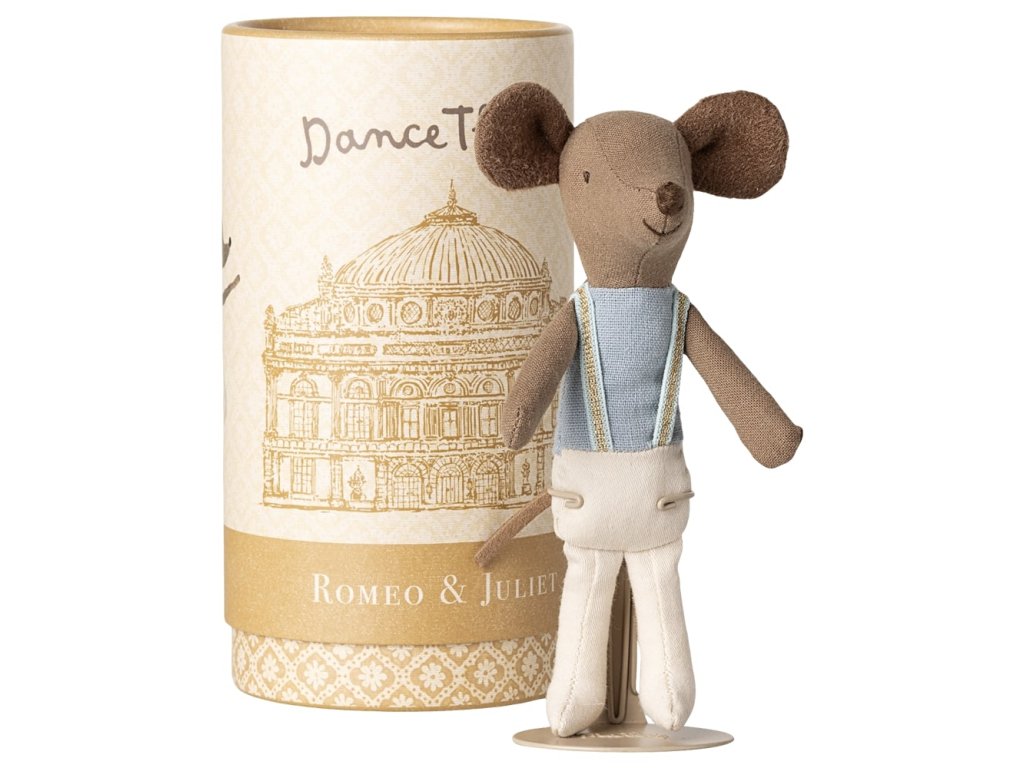 Tento šikovný tanečník Rómeo je oblečený ako skutočná hviezda. Oblečie si svoj obľúbený baletkovský úbor a zatancuje akúkoľvek zložitú tanečnú scénu. Myška je zabalená v krásnej ozdobnej tube a obsahuje aj stojan, ktorý môžete použiť, ak si chcete baletkáča vystaviť na poličku.