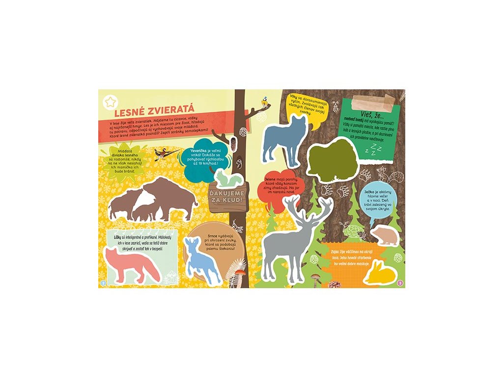 Náučná samolepková knižka obsahuje 16 tematických strán a 4 strany plné farebných samolepiek.