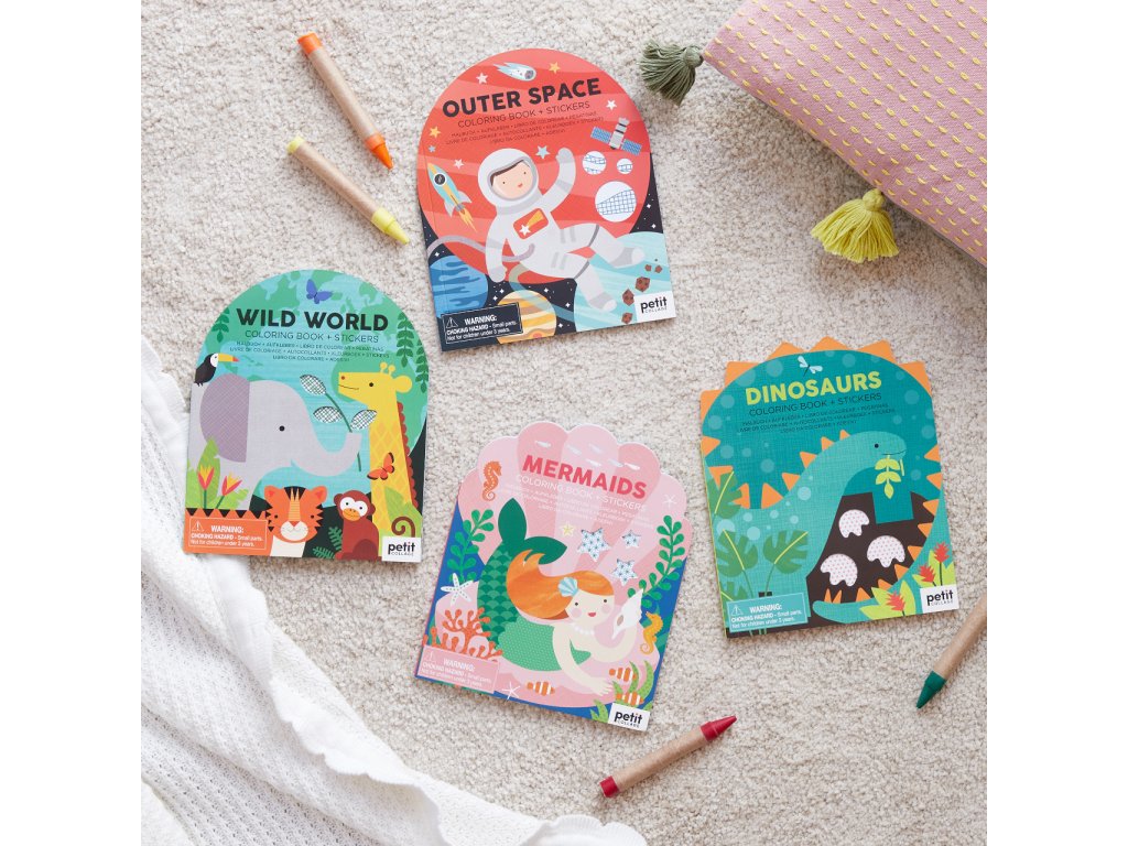 Kamaráti, pripravte si pastelky! Scény s obľúbenými detskými postavičkami, či zvieratami je možné po vyfarbení dozdobiť niektorými z veľkej sady pribalených pestrofarebných samolepiek.