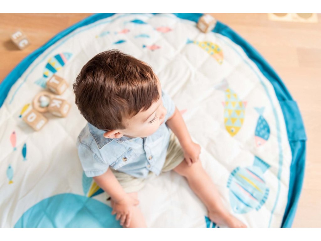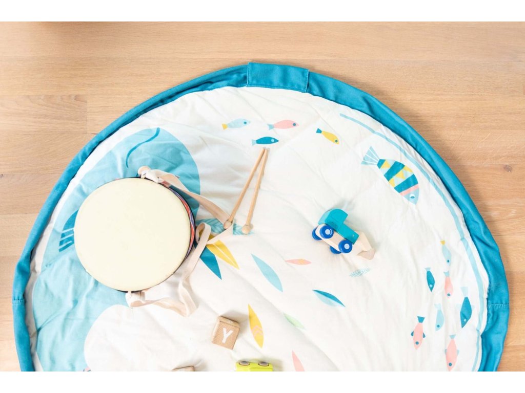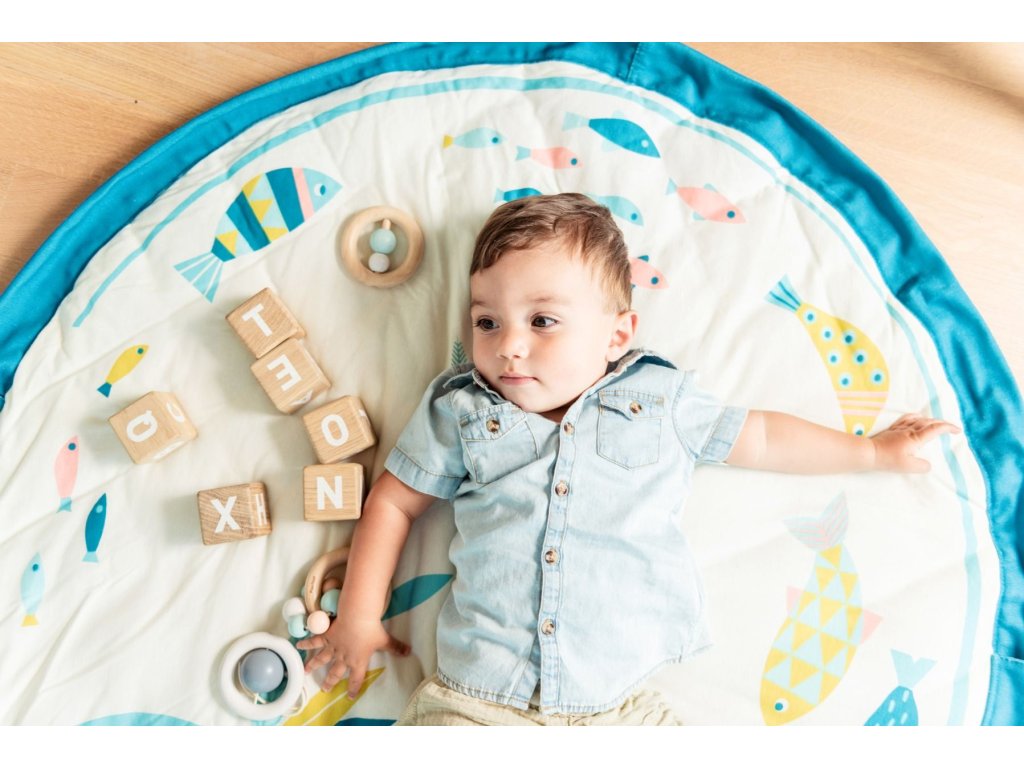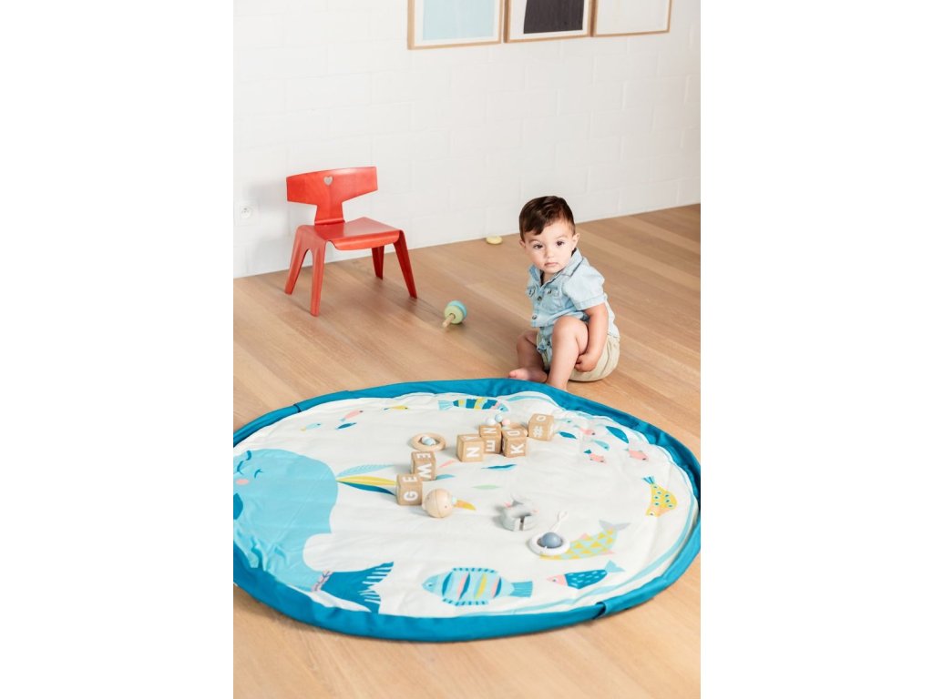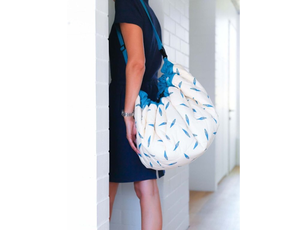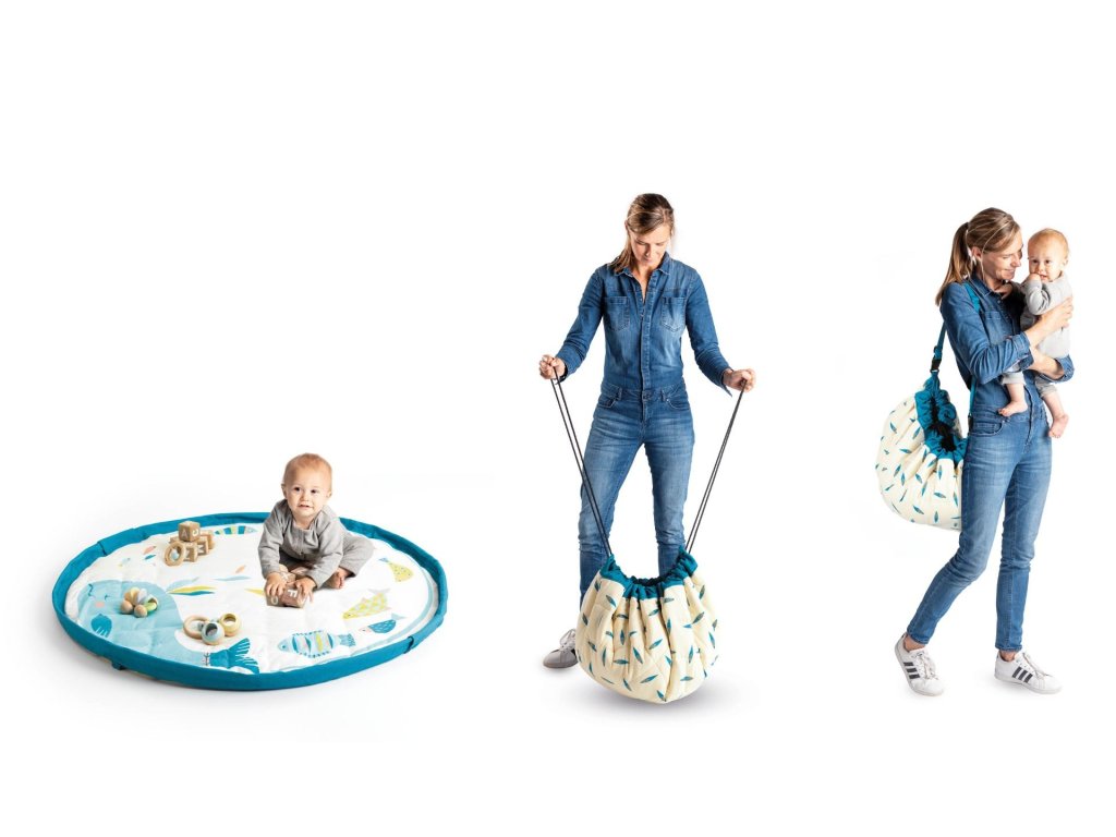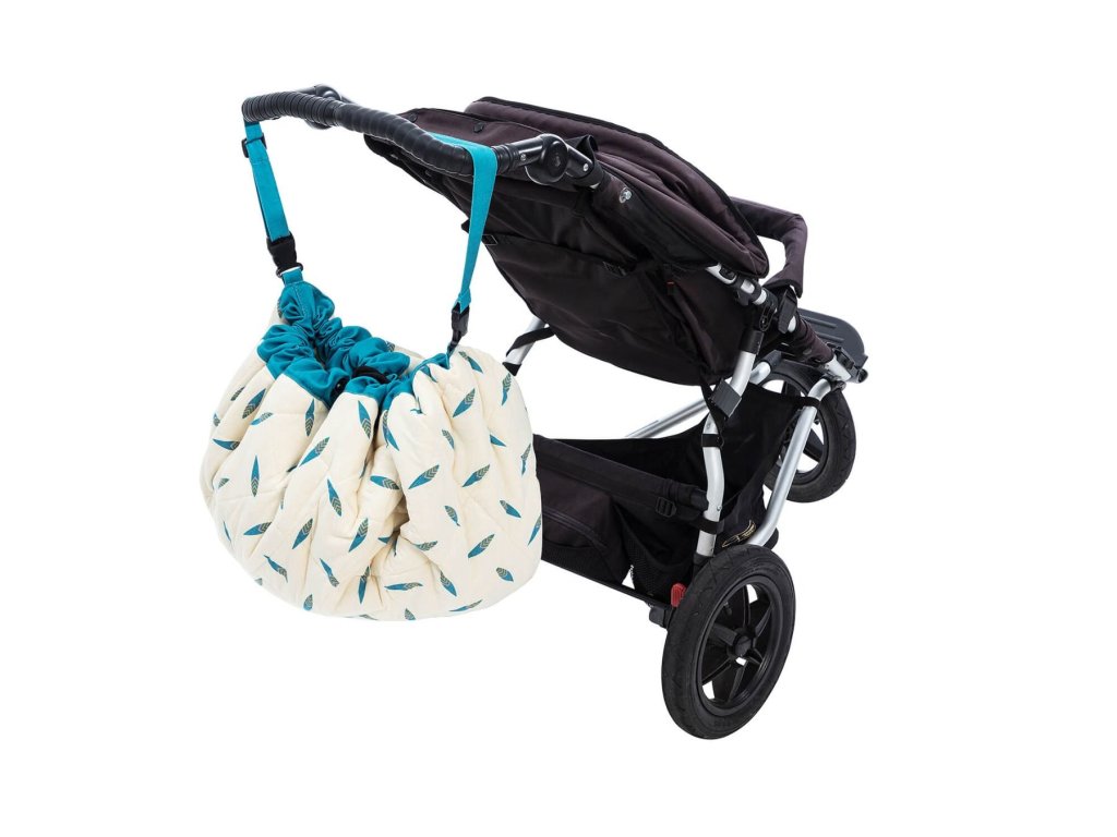 Unikátna podložka na hranie, ktorú zároveň využijete ako vak na hračky alebo prebalovaciu podložku. Rozmer 120cm. Vyrobené z mäkkej bavlny, ktorá bude deťom veľmi príjemná a pohodlná. Hrúbka je 2cm. Súčasťou balenia je aj ramenný popruh, ktorý sa dá pripojiť a podložku si môžete zavesiť na kočík.