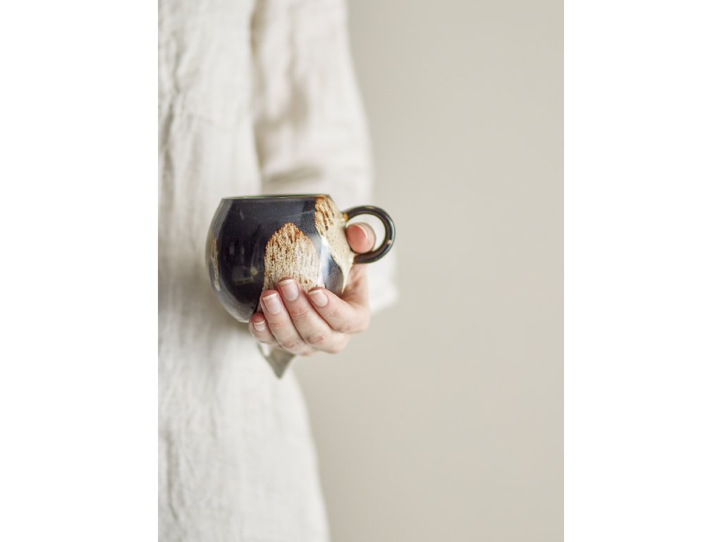 Šálka Paula od Bloomingville je glazovaná krásnou, tekutou glazúrou v tmavých a svetlých odtieňoch so zlatými prvkami. Farebná kombinácia vytvára krásny kontrast, ktorý zvýrazňuje a dodáva moderný nádych inak klasickému dizajnu. Rúčka poskytuje pohodlné uchopenie, vďaka čomu je šálka praktická a zároveň štýlová.