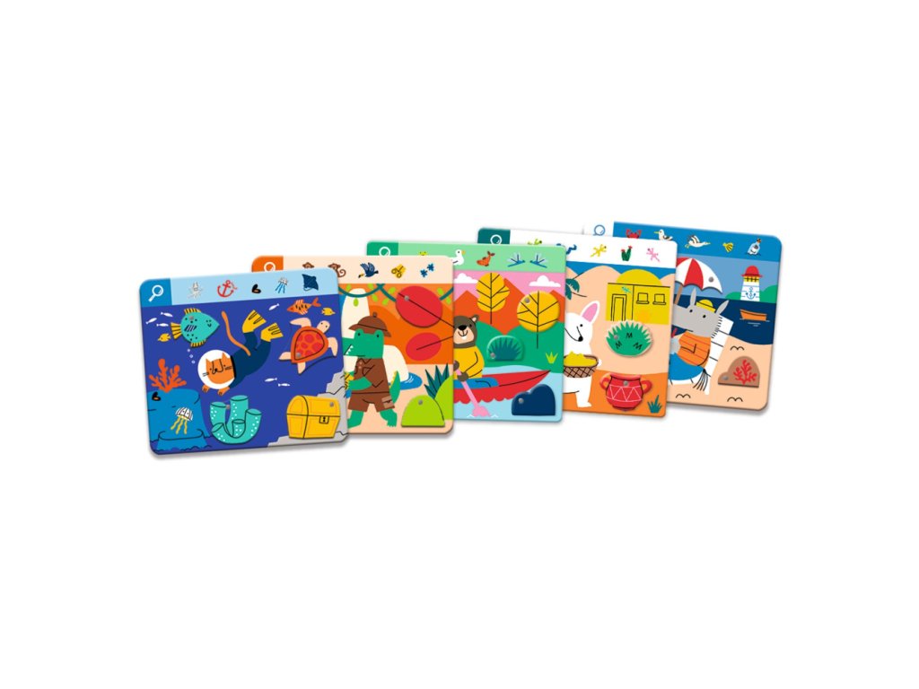 Úplne prvá hra typu „hľadaj a nájdi“, ktorá je originálna, zábavná a plná akcie! So 6 hracími doskami s pohyblivými časťami je každá hra plná objavovania a akcie.
