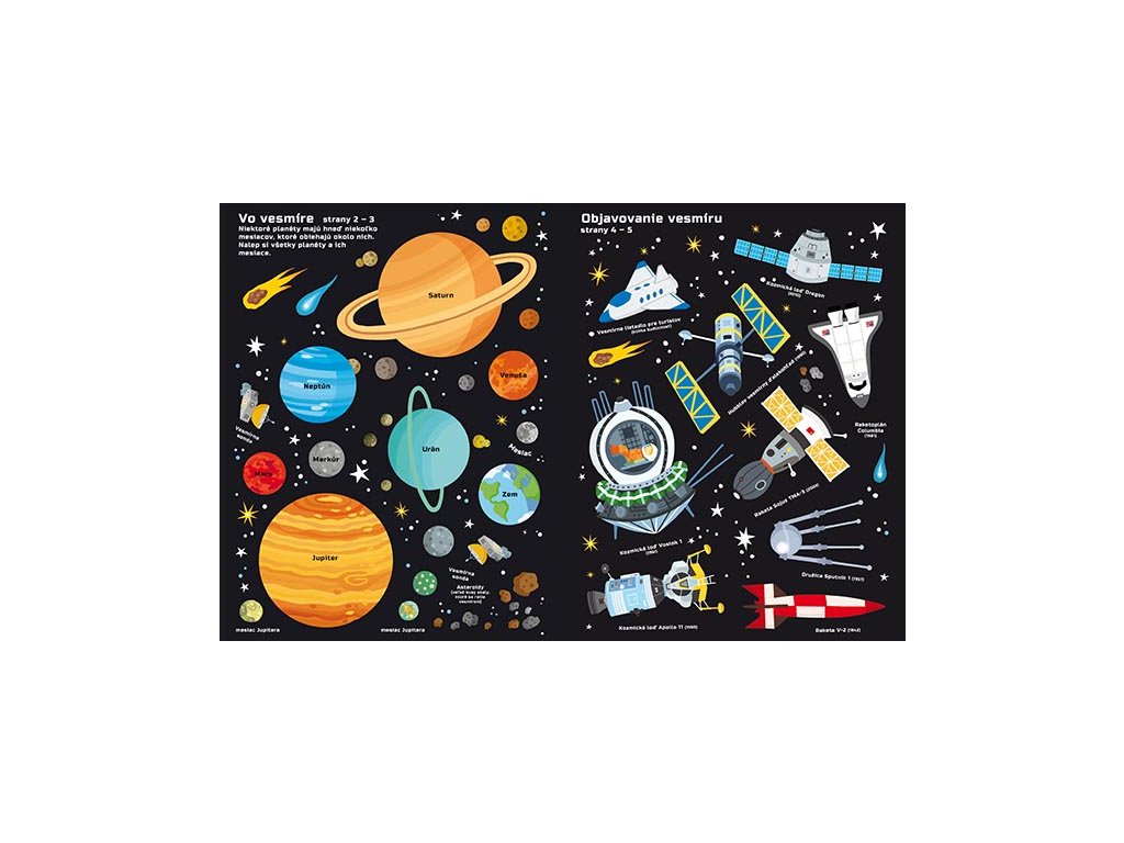 Samolepková knižka obsahuje 16 farebných strán a 8 strán samolepiek na dolepenie.