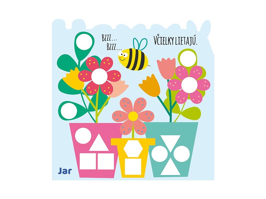 Tvarovaná samolepková knižka malého formátu obsahuje 16 strán a 8 listov opakovane použiteľných samolepiek farebných tvarov, ktoré deti dolepujú do obrázkov podľa príslušnej farby a tvaru.