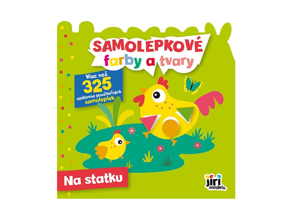 Tvarovaná samolepková knižka malého formátu obsahuje 16 strán a 8 listov opakovane použiteľných samolepiek farebných tvarov, ktoré deti dolepujú do obrázkov podľa príslušnej farby a tvaru.