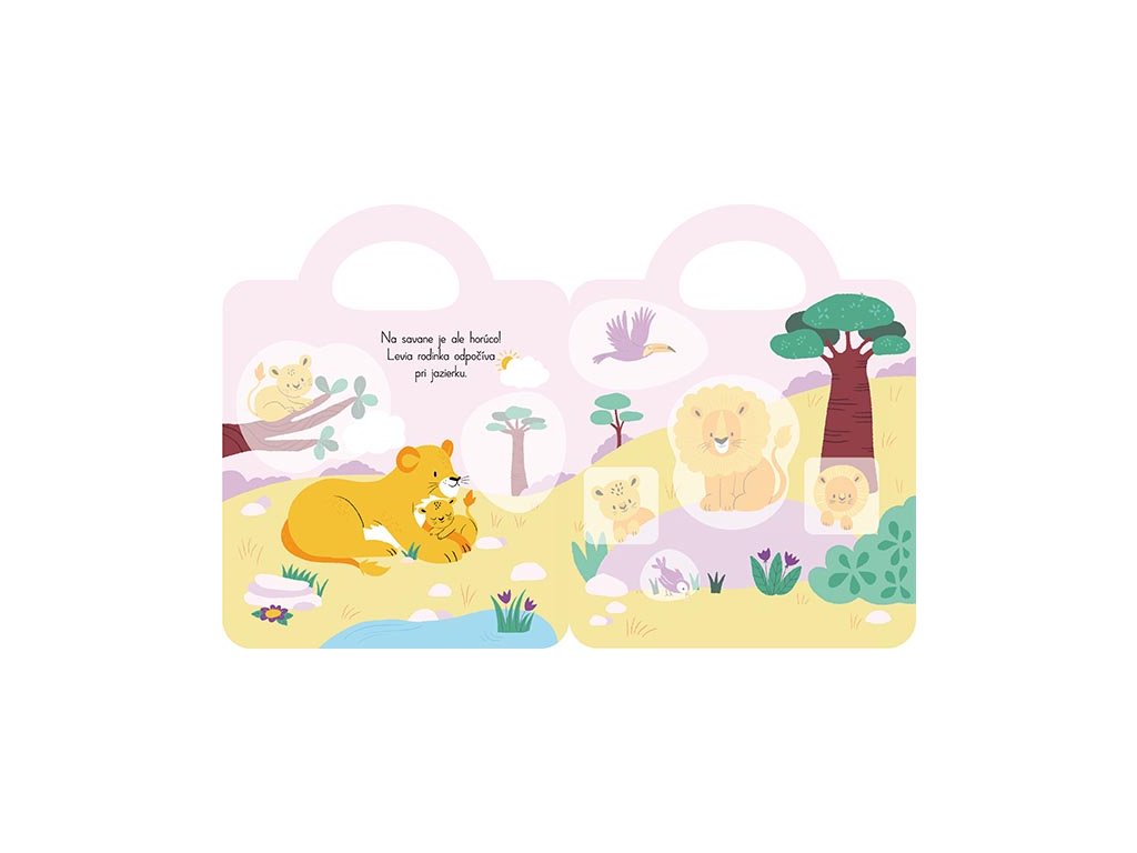 Samolepková knižka malého formátu obsahuje 12 farebných strán a viac než 45 samolepiek na dolepenie a precvičenie jemnej motoriky najmenších detí.