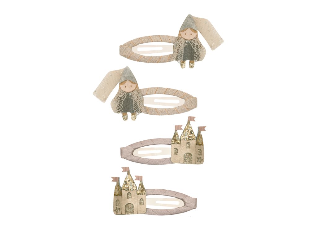 Praktické a zároveň krásne sponky/pukačky pre všetky malé parádnice sú v príjemných pastelových odtieňoch, na konci ktorých sú umiestené princezničky a zámok. Dokonalá kombinácia farieb a materiálov. Výborne držia aj na jemných vláskoch. Môžete ich použiť na prichytenie vláskov zboku, alebo ako ozdobu do copikov a vrkôčikov.