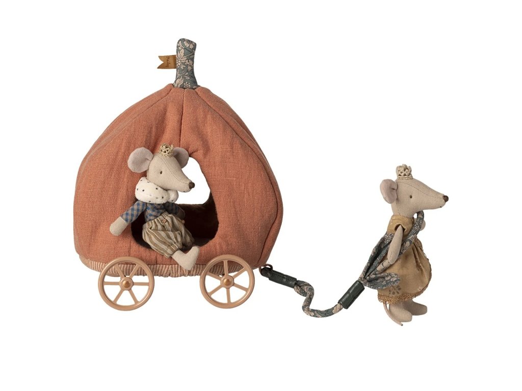 Čo by to bola za myšacia rodinka bez parádneho historického koča. Naše myšky majú štýl a pri výbere svojho nového tátoša nenechali nič na náhodu. Vybrali si špeciálny tekvičkový, s ktorým sa dostanú až ďaleko za sedem hôr na návštevu svojich kráľovských kamarátov.