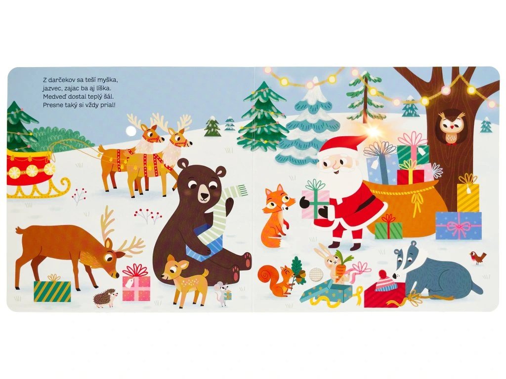 V zasneženom lese sa zvieratká chystajú na Vianoce. Táto veršovaná knižka s blikajúcimi svetielkami a zvukmi vám vykúzli sviatočnú náladu.