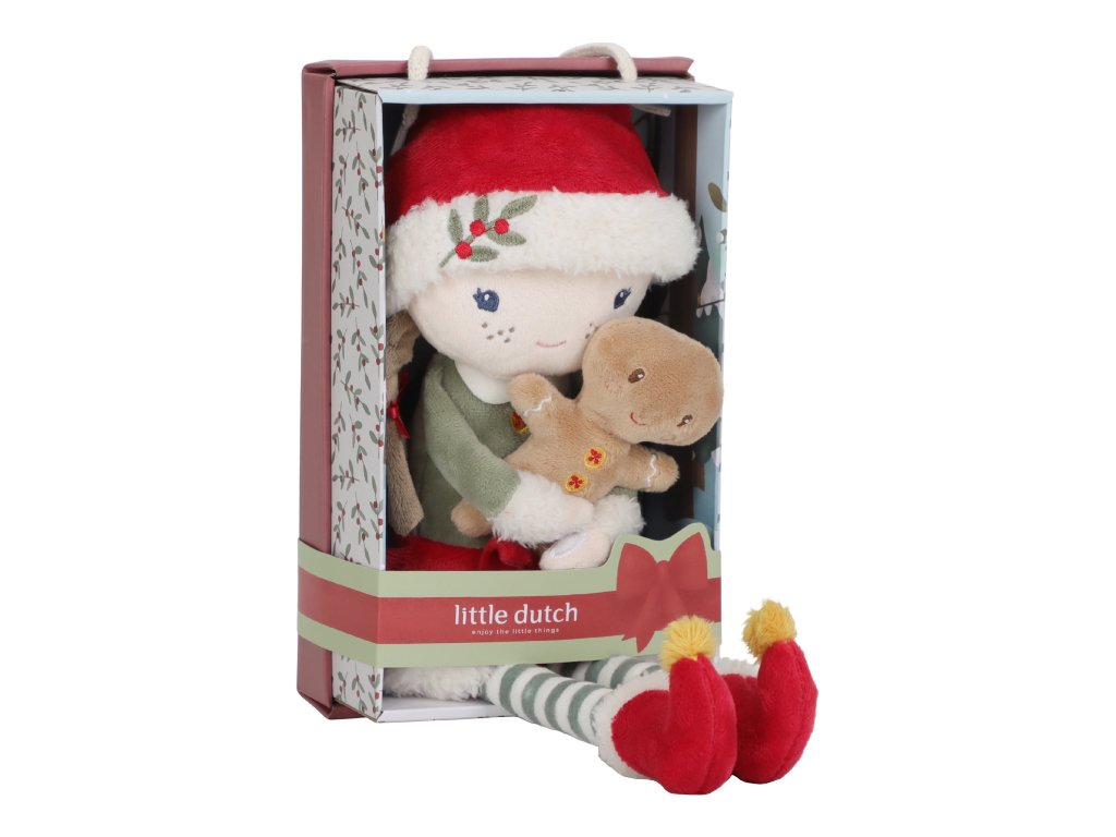 Bábika je vyrobená z jemného polyesteru a dodáva sa v elegantnej darčekovej krabičke, takže poteší aj ako originálny vianočný darček. Je súčasťou špeciálnej vianočnej kolekcie doplnkov a hračiek Little Dutch.