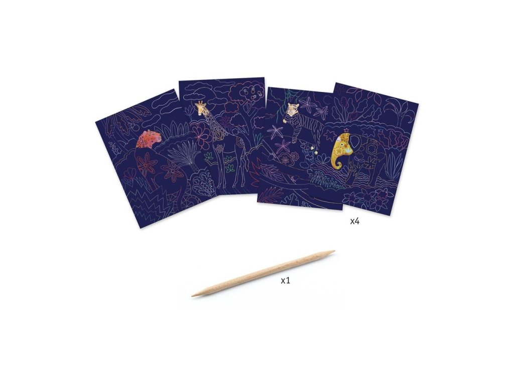 Obsah balenia: 4 vyškrabovacie obrázky, drevená škrabka, obrázkový návod