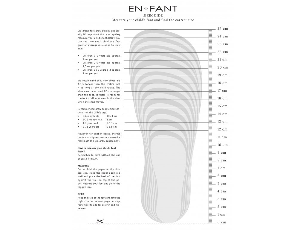 ENFANT. Dánska značka, ktorá patrí do skupiny Brands4kids. Navrhuje a vyrába oblečenie a obuv pre deti od 0 do 12 rokov. Kvalita, komfort a pohodlie sú priority tohto rodinného podniku. Kolekcie topánok aj oblečenia sú vytvorené v klasických farbách a popritom majú silný vizuálny výraz. Vytvorili "The Enfanted World".